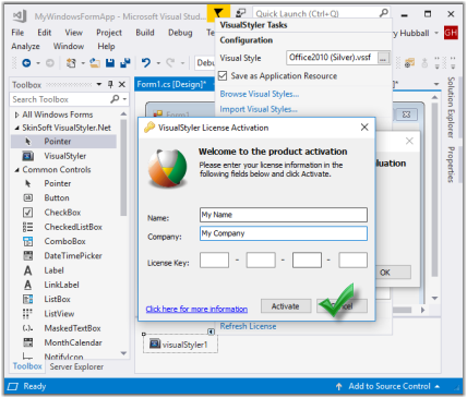 Your product is now permanently activated in the development environment if you upgrade your development computer or have to re-install visual studio then please repeat steps 1-3 to re-activate the product after a H/W upgrade or new development machine.
